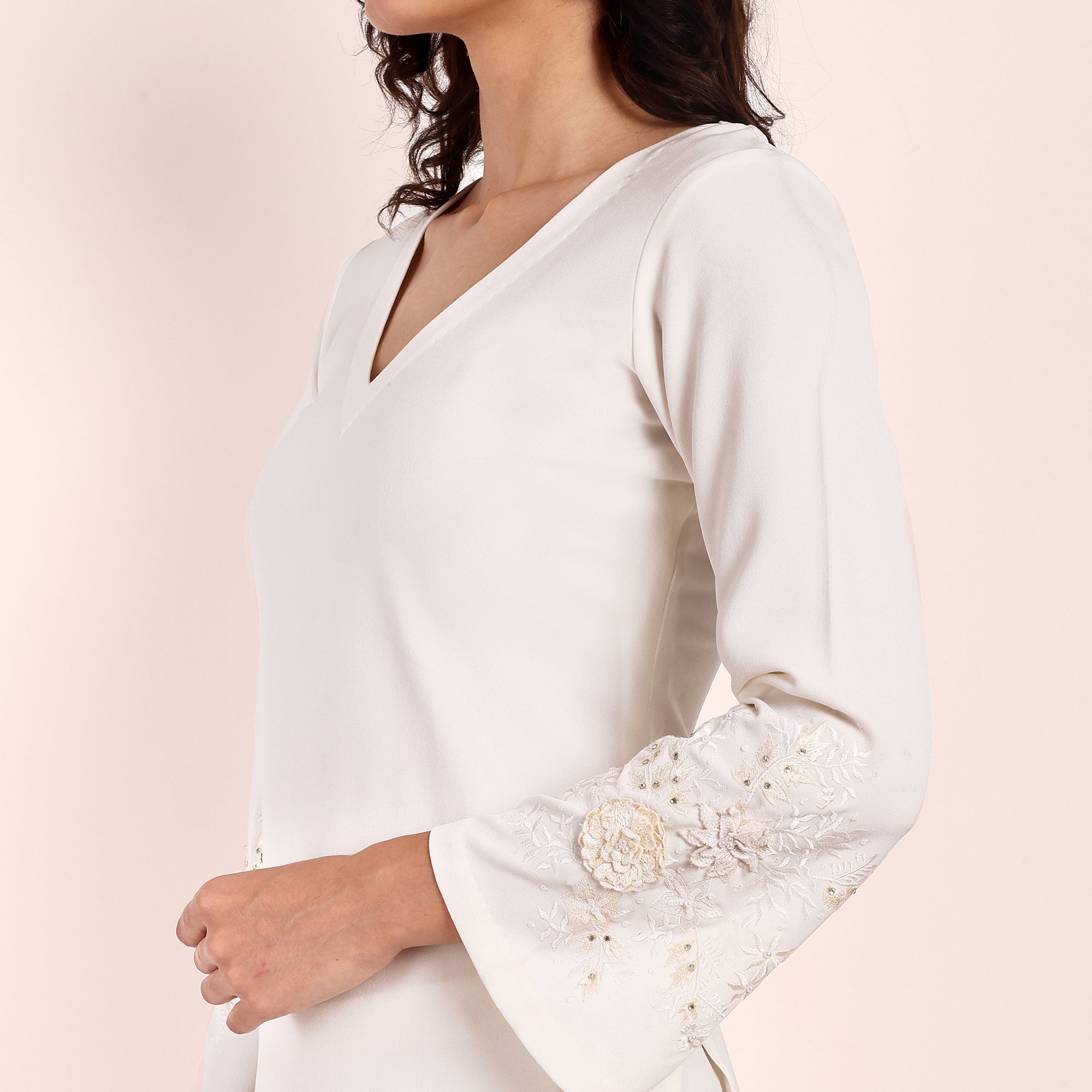 Wine Tissue Hand Embroidered Kurta with Beadwork